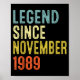 Legend Since November 1989 36th Birthday 36 Year O Poster