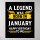 Legend Was Born In January Happy Birthday To Me Poster