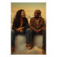 A powerful and nostalgic art poster featuring two legendary music icons sitting together on a cloud, captured in a dreamy heavenly scene. Designed in a retro 1980s style, this artwork blends hip-hop and reggae influences with warm smiles, friendship, and uplifting energy. A perfect tribute piece for fans of classic music culture, inspirational decor, and celestial-themed artwork. Created with AI-generated illustration techniques for a unique, unforgettable look.