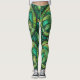 Leggings featuring a vibrant green tropical leaf pattern with a stained-glass effect. The design is bold and lively, paired with black sneakers.