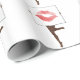 A girls bare legs showing beneath a poster of a kiss in lipstick
