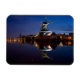 Rectangular photo magnet with the windmill 'Salamander' with reflection in the water of the Vliet river with lights on at the beginning of the night in the city of Leidschendam in the Netherlands.