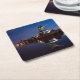 Photo paper coaster with the windmill 'Salamander' with reflection in the water of the Vliet river with lights on at the beginning of the night in the city of Leidschendam in the Netherlands.