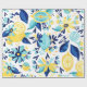Yellow and blue lemon and flowers seamless pattern. Customisable wrapping paper template