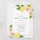 Bridal Shower invitation featuring watercolor lemons and greenery with a square gold accent border. Customise with your information for the bride to be. Click "click to customise further" to change the font style, size or colour.
