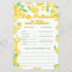 Add a fun touch to your lemon baby shower theme with this personalised baby predictions and advice game! Perfect for a lemon themed baby shower, this game lets guests share their guesses and wisdom for the parents-to-be. A great addition to summer baby shower themes, it complements your bright and cheerful lemon baby shower decor. Enjoy a memorable celebration with this sweet keepsake from your summer baby shower!