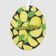 Lemon slices and leaves. Seamless pattern. Custom background colour. Custom text on both sides.