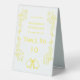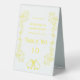 Yellow wedding table number bells design. You can customise this lemon coloured wedding table number with your own wedding details. Should you require any help with customising then contact us through the link on this page. Bells scrollwork design personalised yellow coloured wedding table number