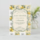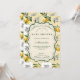 A fresh and cheerful baby shower design inspired by sunny citrus orchards. Bright lemons, delicate blossoms, and soft green leaves frame a classic scalloped centerpiece, creating a warm and inviting look. Perfect for spring and summer celebrations, this design blends natural charm with elegant typography for a timeless feel. A beautiful choice for honoring the mother-to-be in a vibrant, joyful setting.
