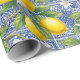 Lemon Blue French Country Watercolor Tile Wrapping Paper