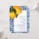 Lemon Blue Mediterranean Tile Chic Stylish Wedding Invitation