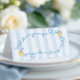Add a charming detail to your table setting with this elegant place card featuring watercolor lemons, soft blue bows, and classic blue and white stripes. Perfect for seating arrangements, food labels, or favour tables at a Mediterranean-inspired baby shower.