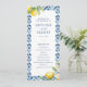 Add a touch of Italian charm to your wedding ceremony with this lemon floral wedding program. Designed with beautiful watercolor lemon and blue tiles, this wedding order of service will perfectly match your destination wedding, Italian wedding ceremony or Mediterranean summer wedding!