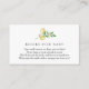 A book request insert card for baby shower. Featuring watercolor lemon branches and greenery with poem: "ONE SMALL REQUEST, WE HOPE NOT TOO HARD PLEASE BRING A BOOK INSTEAD OF A CARD THEY'LL CHERISH THE BOOK, WELL LOVED OR BRAND NEW PLEASE SIGN THE INSIDE WITH A MESSAGE FROM YOU!"