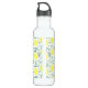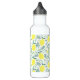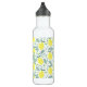 Lemon botanical pattern with a collection of bright canary yellow lemons, falling compound locust leaves, seed pods and sprouts in patina green, blue-green and greenish chartreuse. Set on white.