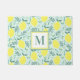 Lemon botanical pattern with a collection of bright canary yellow lemons, falling compound locust leaves, seed pods and sprouts in patina green, blue-green and greenish chartreuse. Set on a very unsaturated very light cold cyan.