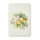 A bath mat with a lovely illustration of a bouquet of lemons surrounded by white blossoms leaves and sprigs.