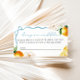 Make your baby shower both fun and functional with this adorable lemon-themed diaper raffle card from our Ciao Baby Dolce Lemons & Bows collection. Designed with watercolor lemons, soft blue bows accents, and elegant modern typography, this enclosure card adds a cheerful, adorable touch to your baby shower invitation suite.