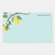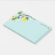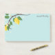 Pale blue jumbo post-it notes with a branch of lemons white vanilla yellow flowers. Add your name in a brown calligraphy script.