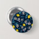 Lemon branches with blossoms and fruit on blue 6 cm round badge