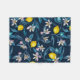 Lemon branches with blossoms and fruit on blue fleece blanket