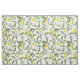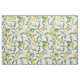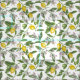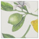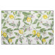 Lemon branches with blossoms and fruit on white fabric