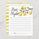 Rustic citrus theme bridal / wedding shower date night advice cards featuring watercolor illustration of lemons on a tree branch. Ask the guests to fill out this card during the shower. It will be a great keepsake!  Perfect for a summer shower.