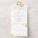 Lemon themed bridal shower invitation with detachable recipe card.
