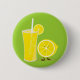 A smiling halved lemon character, standing next to a tall glass of lemonade
