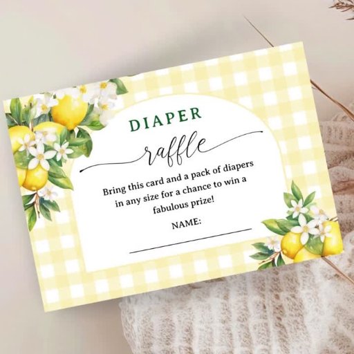 Elevate your Baby Shower with our "Lemon Citrus Baby Shower Diaper Raffle Cards", and give your guests the possibility to participate in the Diaper Raffle! Give them the chance to win amazing prizes while helping the parents-to-be prepare for their bundle of joy. Don't miss out – grab your Diaper Raffle Cards now and make your baby shower even more special!