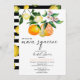 She Found her main squeeze bridal shower invitations featuring watercolor vibrant zesty lemon citrus branch on the front and a lemon pattern with black and white stripes on the back. Easily personalise with your own details.