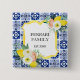 Show off your love for Italy with this stylish button! Featuring a lemon citrus design, navy blue Mediterranean tile pattern, and floral botanical details.