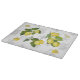 Hot pad cutting board with lemons and a background of light grey fruit drawings. Your choice of sizes.