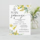 This lemon themed bridal shower invitation features two floral arrangements with lemons and lemon drop martini cocktail. This she found her main squeeze bridal shower invitation also features a modern calligraphy word.