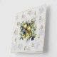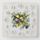 Pretty bright kitchen wall clock with lemons. Background of light grey fruit drawings. Makes a nice housewarming gift.