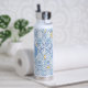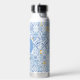 Lemon fruit monogram, blue tile water bottle