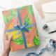 Lemon fruit pattern yellow and peach pink wrapping paper