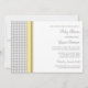 Personalised baby shower invitations in elegant and modern bright yellow, grey and white casual and rustic gingham chequered vintage pattern. Customisable with your text, contact us to request a colour change.
