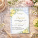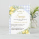Celebrate your upcoming bundle of joy with this elegant lemon-themed baby shower invitation. Featuring a soft dusty blue and white gingham background, delicate watercolor lemons, fresh greenery and a blue bow, this design creates a warm and inviting atmosphere perfect for a summer or citrus-inspired baby shower.