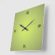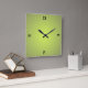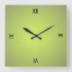 Pretty kitchen wall clock of a yellowish green color. Four black Roman numerals