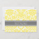 Personalised baby shower invitations in elegant and modern bright lemon yellow, grey and white classic and vintage floral damask pattern. Customisable with your text, contact us to request a colour change.