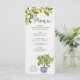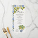 Lemon Grove wedding menu with fully editable menu items. Design features a lemon tree, blue and yellow Mediterranean tiles and a branch of lemons with greenery and blossom flowers. Perfect for a lemon wedding theme, Italian inspired wedding, rustic Mediterranean villa aesthetic, blue and yellow wedding colours or an outdoor wedding at any time of the year. For co-ordinating invitations, stationery, day of event and table décor, games and wedding signs, please browse my Lemon Grove Wedding Collection or message me to add any additional items you need.