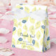 This cute baby shower favour gift box features a white background with pattern of yellow lemons and blue leaves. Change the background colour and personalise it for your needs. You can find matching products at my store.