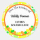 An editable baking or canning sticker with a colourful citrus fruit pattern of lemons, limes, oranges and citrus slices on squares of white, orange, teal and yellow, for marmalade, jellies or other recipes.