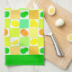 Lemon Lime and Oranges Pattern Green Border Tea Towel