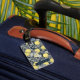 I was happy with the acrylic tag but it came with a thin leather strap to attach the tag to luggage (like a cat collar). I replaced the strap with a metal ring off of a key ring as the leather strap would come undone or break easily as luggage is sometimes handled without much care by airlines. Printing is great. Colours and positioning of the design I put on the tag were perfect. Very pleased.