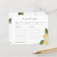 Lemon Main Squeeze Bridal Shower Recipe Card