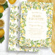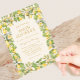 Invite your guests to a radiant celebration with this exquisite bridal shower invitation from the "Main Squeeze" collection. Each invitation features a delicate frame of hand-painted lemons, lush greenery, and soft lemon blossoms on an elegant ivory background, complemented by sophisticated gold text. The reverse side continues the theme with a matching pattern, creating a harmonious and inviting look that beautifully sets the stage for a memorable Mediterranean-inspired gathering.