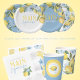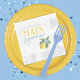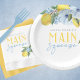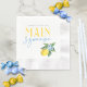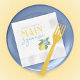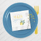 Elegant and Sweet Lemon Main Squeeze Personalised Coined Cocktail Paper Napkins. Customise with the bride-to-be's name. Featuring beautiful elegant dusty slate blue watercolor flowers and a sweet yellow lemon.