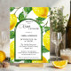 Bridal shower invitation featuring watercolor lemon citrus fruits with fresh green leaves. Beautiful for a Mediterranean, summer or garden celebration.